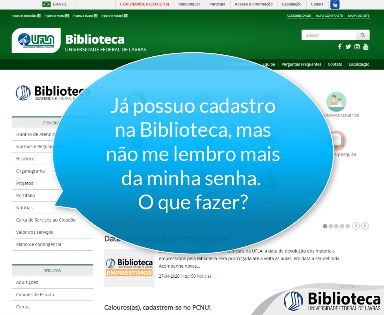 Como recuperar sua senha da Biblioteca da UFLA? Confira neste tutorial como redefinir ou criar sua senha para acessar os serviços da Biblioteca da UFLA:
