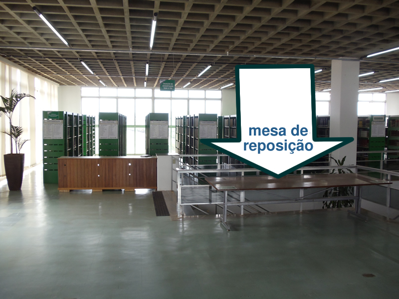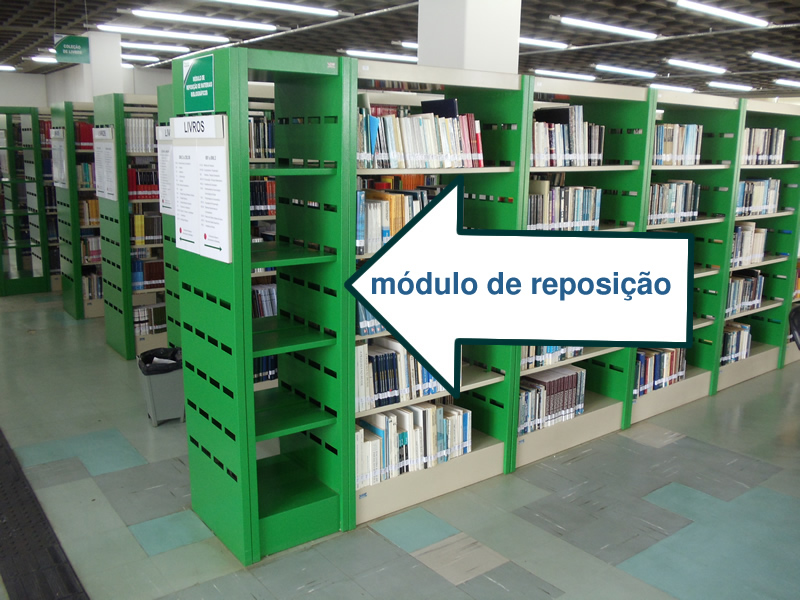 Anotado o número de chamada da obra desejada, o próprio usuário deve buscar o material bibliográfico nas estantes e fazer o empréstimo do item.